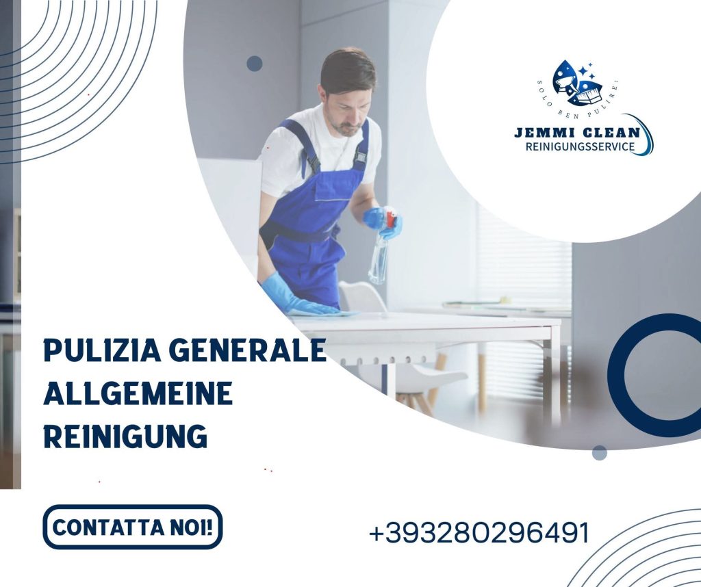 JEMMI CLEAN è un’impresa di pulizie con sede a Naturno che da anni si dedica alla cura e alla sanificazione di ambienti privati e professionali. La nostra missione è offrire ai clienti servizi di pulizia precisi, puntuali e personalizzati, capaci di garantire ambienti sempre freschi, igienizzati e accoglienti. Operiamo con un team qualificato, attento ai dettagli e costantemente aggiornato sulle migliori tecniche di igienizzazione.